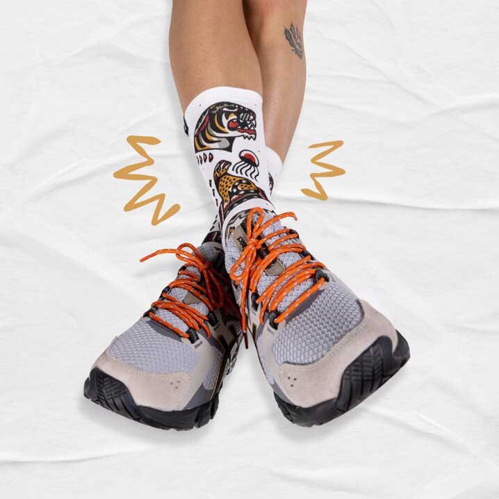 Носки от тату-мастера из Антверпена (Бельгия) JASPER. Джаспер, обладающий особым стилем, наполненным символизмом, работает с линиями и земляными цветами, что делает эти носки незаменимыми в вашем образе.