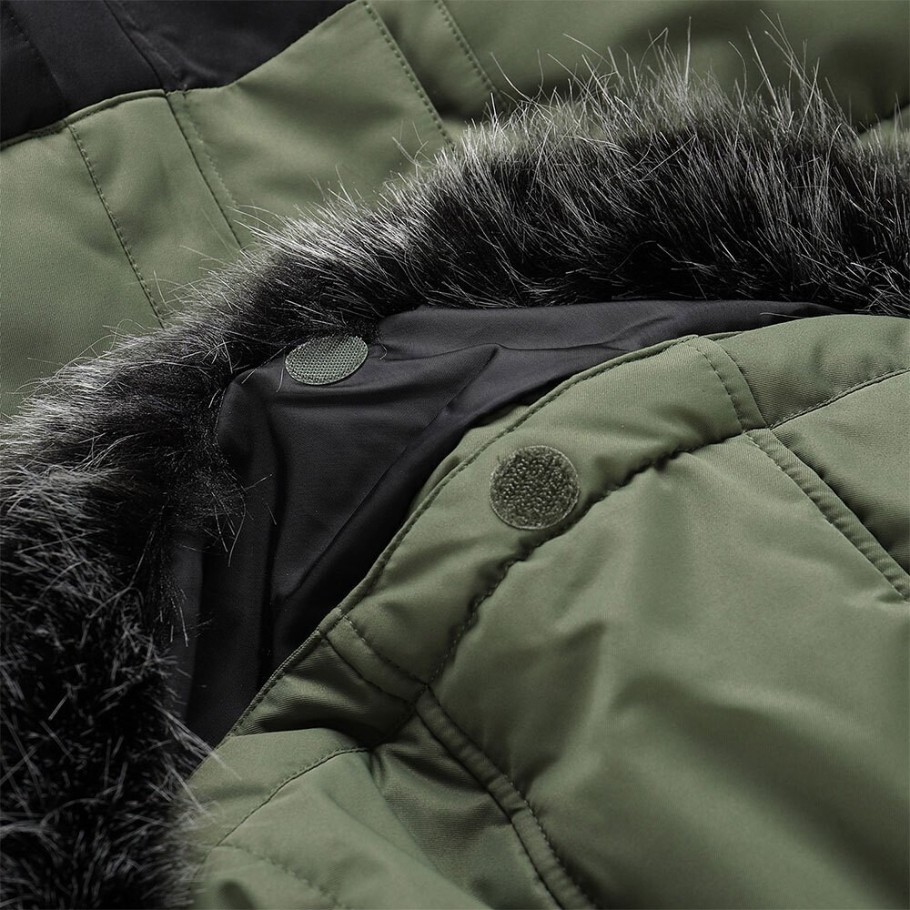 материал водонепроницаемый, паропроницаемый, ветроустойчивый, меланж | материал отделка мембрана PTX, водяной столб 3 000 мм, паропроницаемость 3 000 г/м2/24ч, DWR | изоляция толстая | стандартная посадка | капюшон несъемный, со шнурками | мех съемный | манжеты рукавов с регулировкой на кнопках, с ребристой манжетой внутри | нижняя часть с регулировкой ширины | карманы всего 5 | нашивка на рукаве.