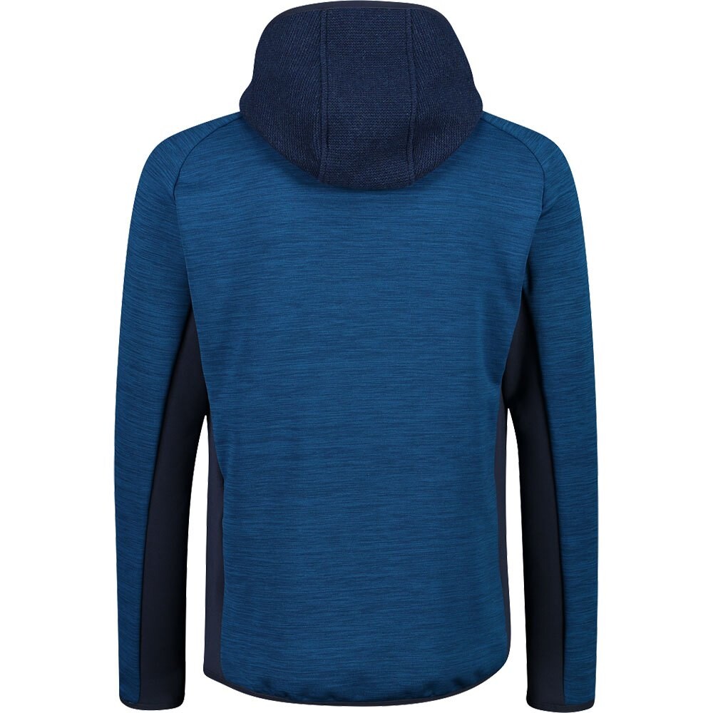 С капюшоном, двумя боковыми карманами на молнии и эластичными манжетами.