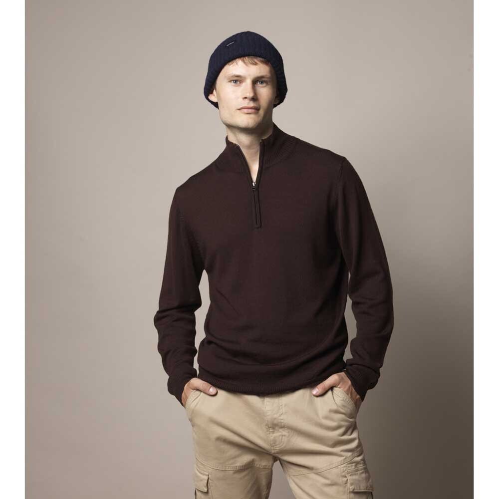 Джемпер на полумолнии из 100% мериносовой шерсти тонкого калибра, изготовленной из итальянской пряжи.