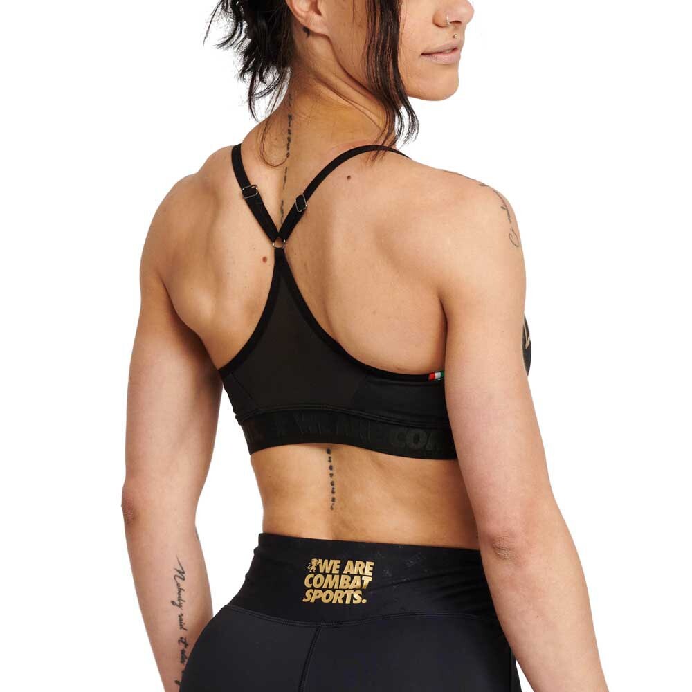 Топ DNA полностью представляет бренд Leone 1947. С регулируемыми бретелями на спине и резинкой с логотипом «We Are Combat Sports». Он дополнительно украшен логотипом.
