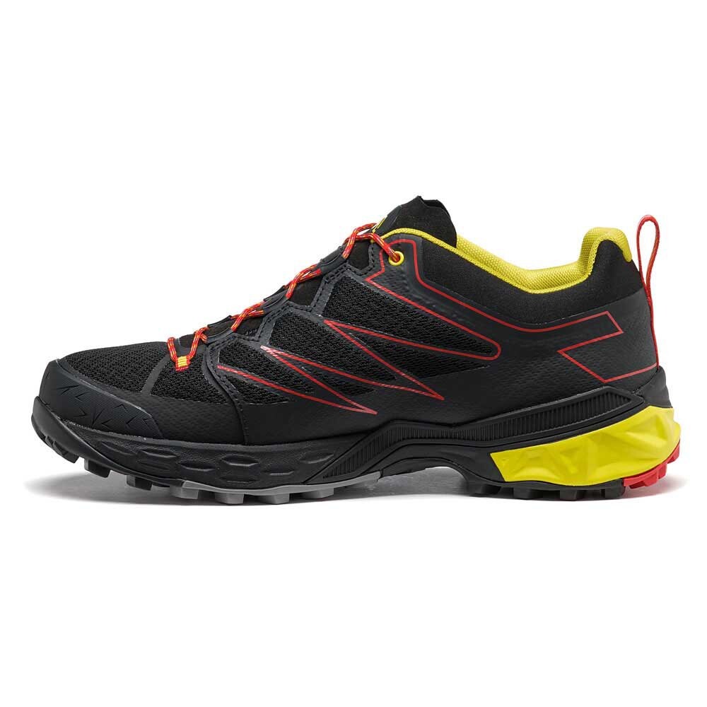 Верх из полиэстера, усиленный материалом ТПУ, обеспечивает защиту и комфорт, а вельветовая подкладка обеспечивает воздухопроницаемость и антибактериальное действие. Подошва изготовлена из межподошвы Eva моноплотной плотности, обеспечивающей наилучшую устойчивость, поддержку, комфорт и амортизацию. Технология AS-Tech была разработана и внедрена для придания конструкции и устойчивости к скручиванию. Подошва Asolo Cross имеет самоочищающуюся конструкцию и обеспечивает лучшее сцепление и сцепление благодаря составу Sigma Grip, разработанному Asolo. В завершение модели имеется шапочка из ТПУ для дополнительной защиты, термоформованный язычок, гарантирующий наилучшее прилегание, и система шнуровки, обеспечивающая точную шнуровку.