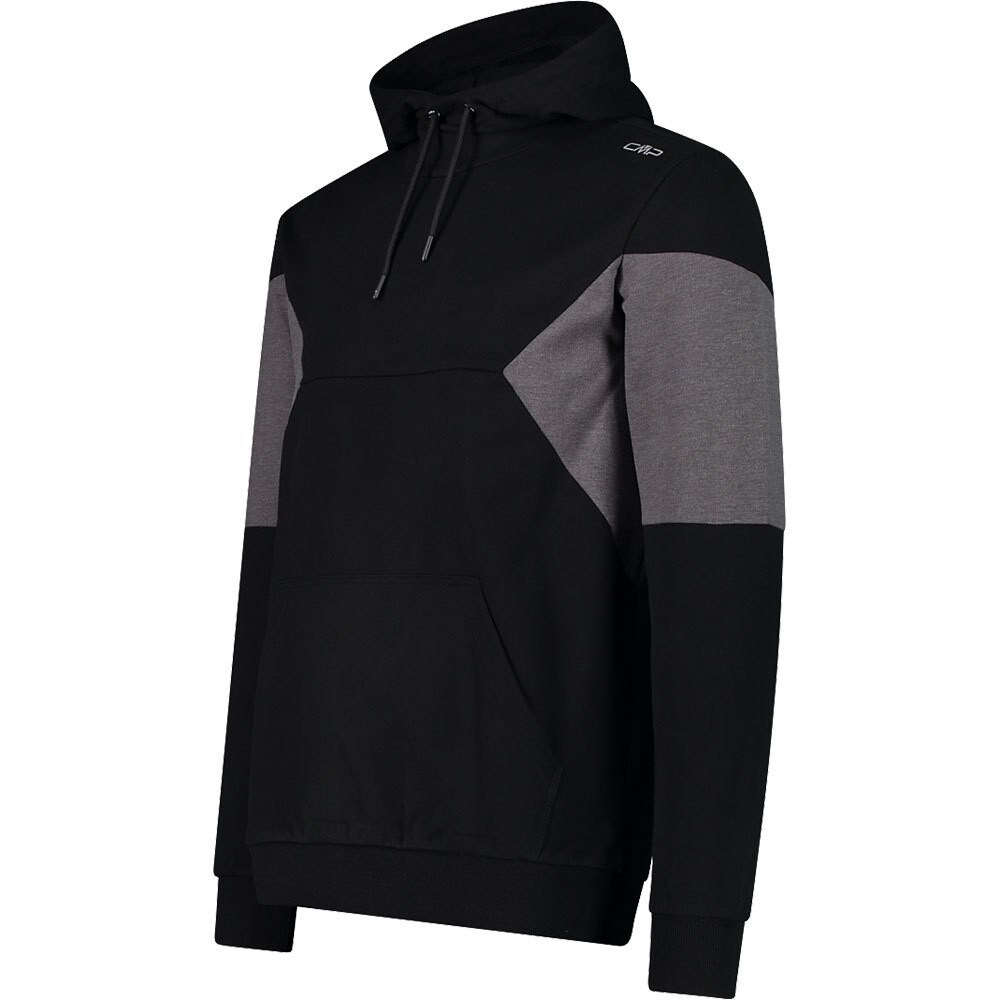 Модель с фиксированным капюшоном и передним карманом, эластичным низом и манжетами.