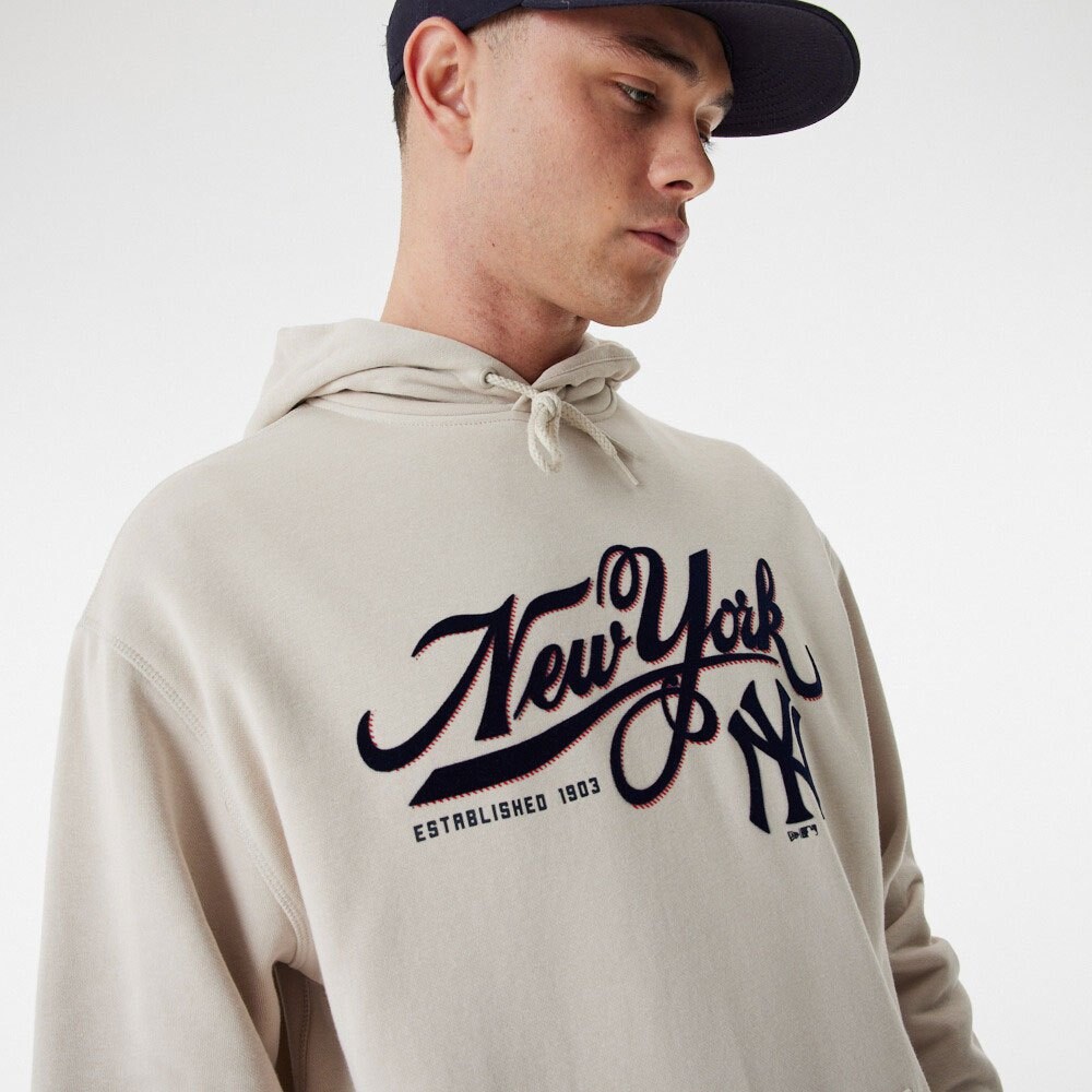 Толстовка Mlb Retro Grphc Os Hoody New York Yankees с флоком команды и пигментным принтом по центру спереди.