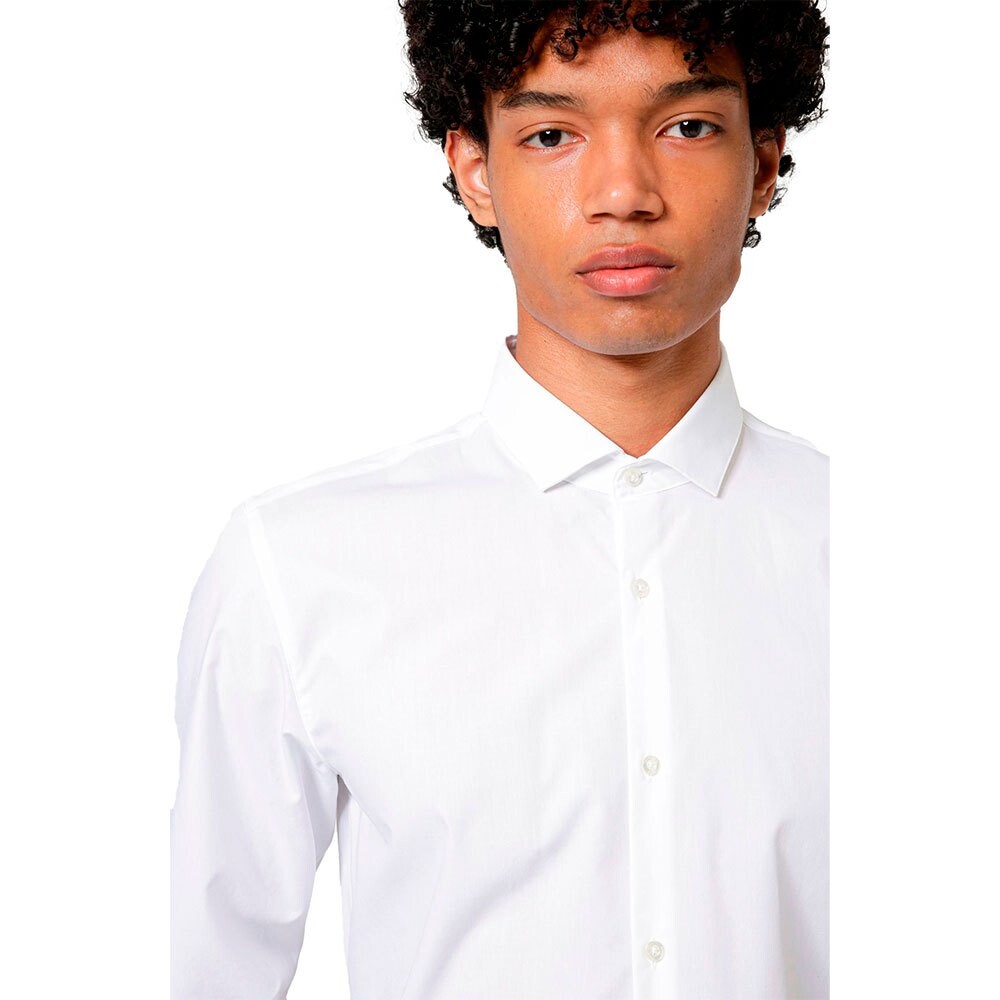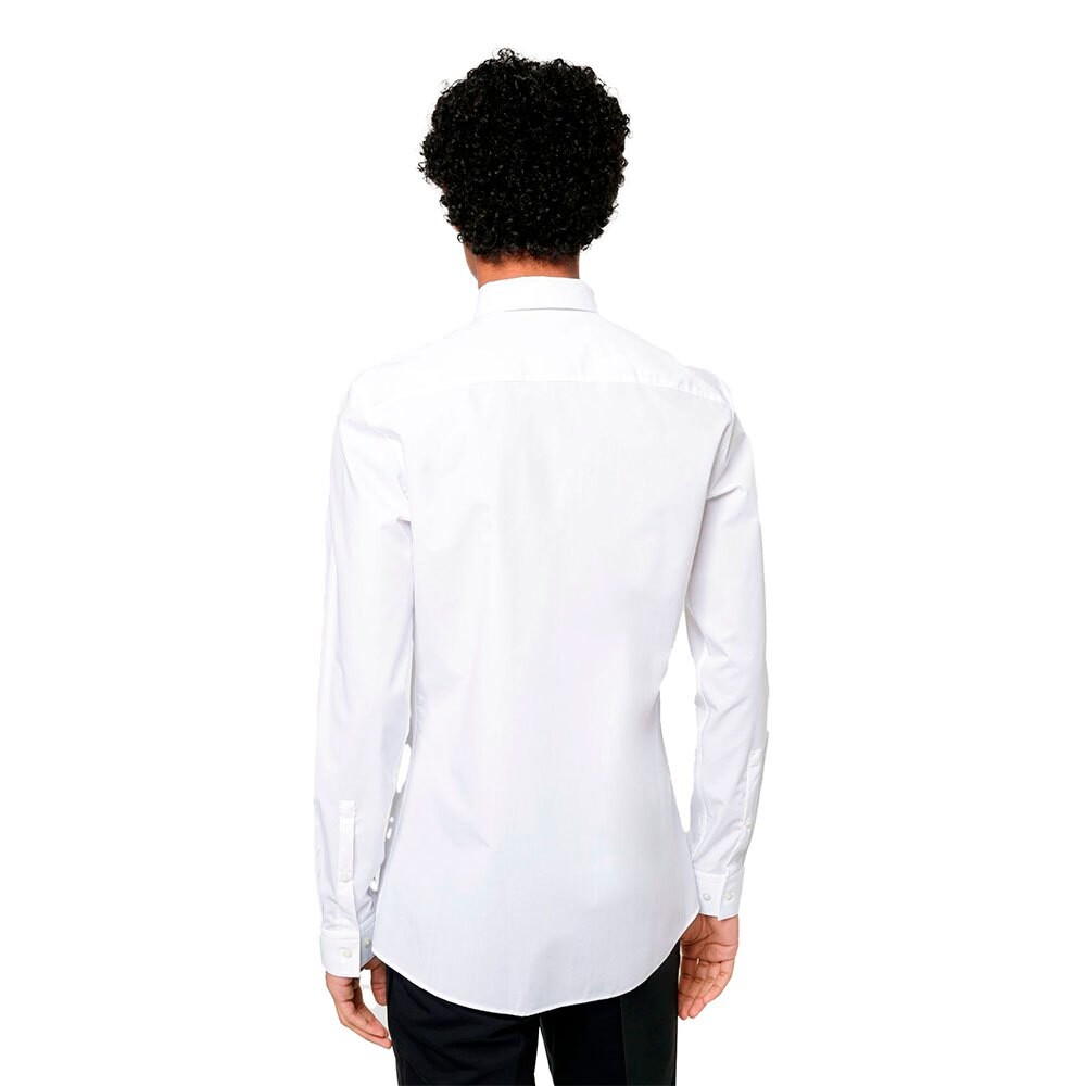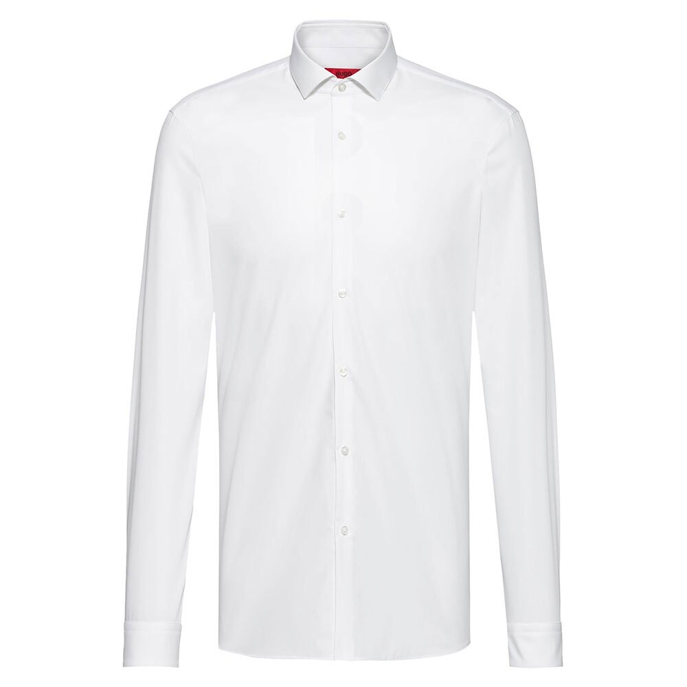 Современная рубашка обтекаемого кроя от HUGO Menswear. Эта деловая модель, выполненная из плотного поплина, сотканного из хлопка, дополнена распростертым воротником и внутренней маркировкой фирменного красного цвета. Носите эту рубашку с галстуком или без него, чтобы создать модный подход к профессиональному образу.