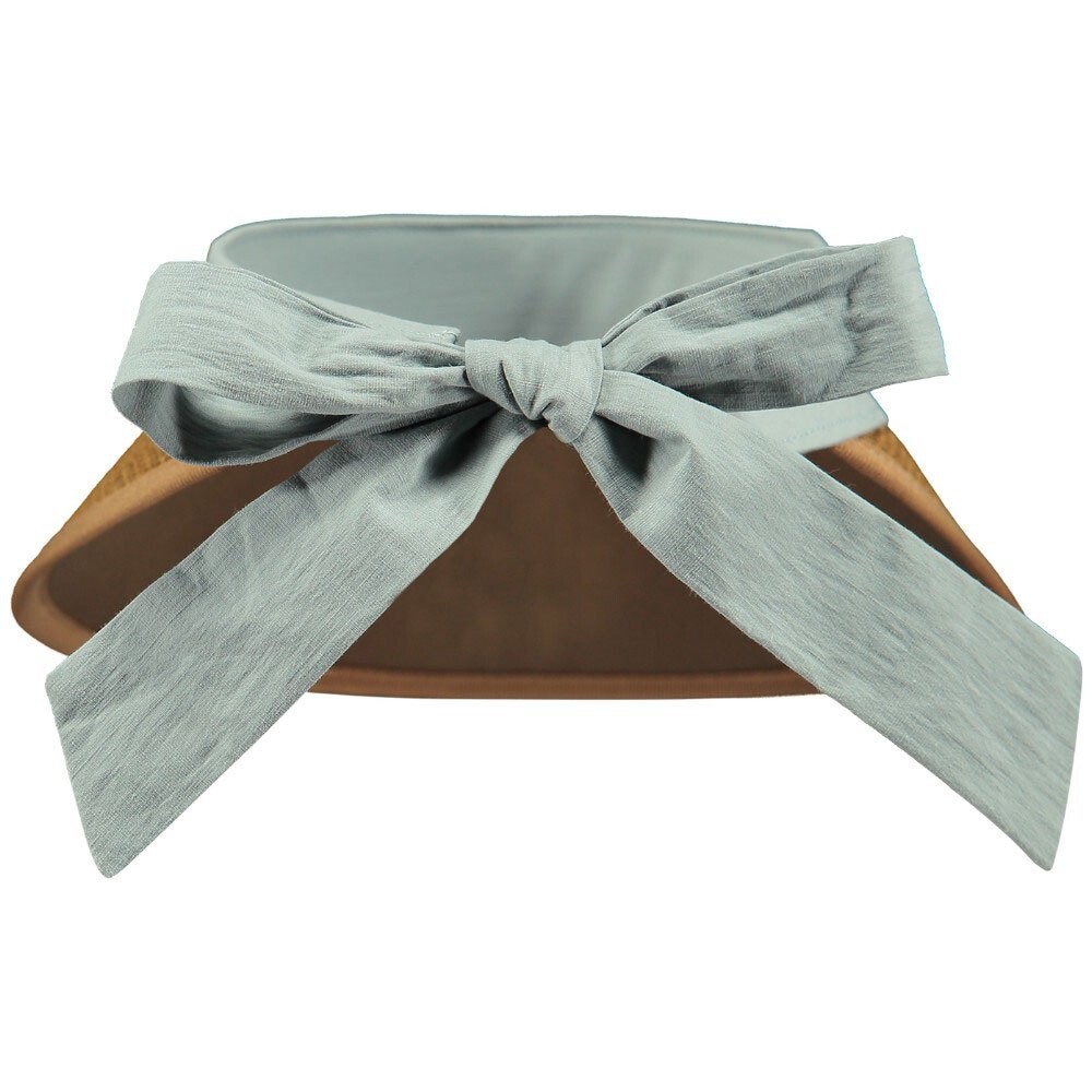 Этот козырек изготовлен из смеси хлопка и бумаги и дополнен регулируемым бантом сзади.