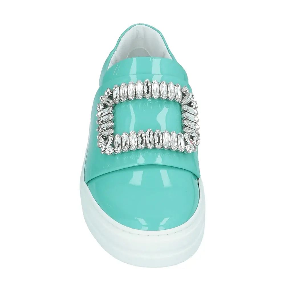 Лоферы из мягкой кожи с эффектом лака и контрастной аппликацией.