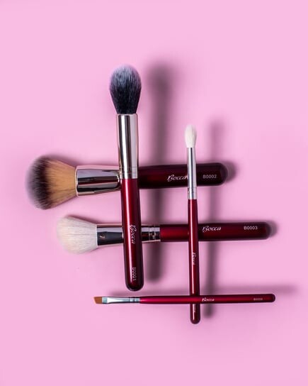 Профессиональная кисть для румян и бронзатора Bocca Beauty, позволяющая аккуратно наносить бронзирующие и осветляющие косметические средства для контурирования лица.