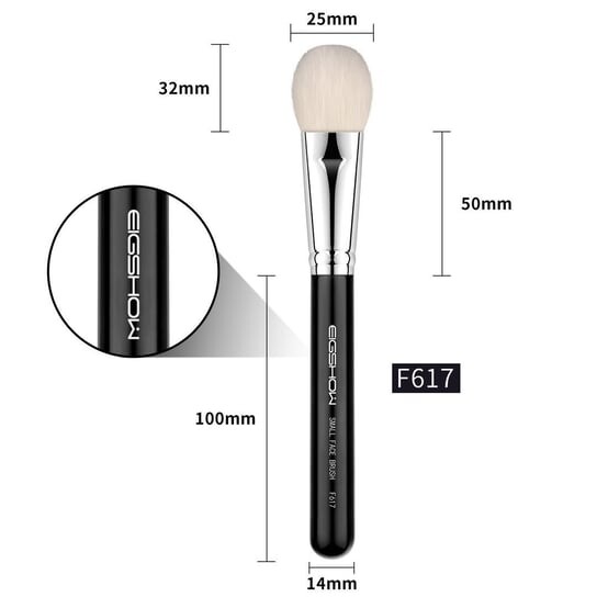 Маленькая кисть для лица F617 представляет собой многофункциональную кисть для лица. Идеальная форма и размер для нанесения бронзатора на лоб/виски, а также для более точного нанесения бронзатора вокруг челюсти и по бокам носа для создания тонкого контура.