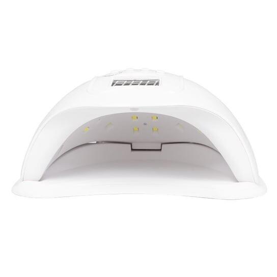 Профессиональная УФ/LED-лампа последнего поколения, которая быстро и равномерно затвердевает все гели и лаки. гибридные и другие светоотверждаемые препараты благодаря использованию технологии двойного светодиода. Он излучает белый свет, который не напрягает глаза. Лампа SUN 5 оснащена энергосберегающим источником света высокой мощности с двойным диапазоном длин волн: 365 нм и 405 нм. При этом 24 диода дают суммарную максимальную мощность 48Вт. Светильник имеет встроенный датчик движения, таймер на 10, 30, 60 и 99 секунд и после активации датчика горит непрерывно до 120 секунд. 99-секундный «Режим низкого нагрева» — режим, при котором мощность лампы постепенно увеличивается каждые 30 секунд. Это исключает ощущение жжения при нанесении строительных гелей. Большой электронный дисплей облегчает контроль времени. Время работы: 10 с, 30 с, 60 с, 99 с