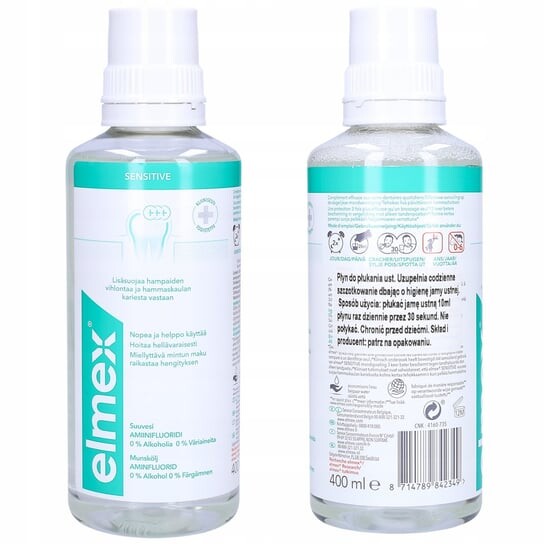 3x ELMEX SENSITIVE ORAL LIQUID 400MLРеминерализует зубы - Эффективно предотвращает кариес - Приятный вкус - Укрепляет зубную эмаль. - Создает защитный слой, защищающий эмаль от воздействия кислот. - Защищает от дальнейшего разрушения размягченной эмали во время чистки зубов. Кроме того, благодаря содержанию фторида амина защищает зубы от кариеса. Дополнительный уход для повышения защиты от кариеса. Идеально подходит для людей, носящих ортодонтические брекеты. Продукт разработан швейцарскими специалистами. Клинически протестировано.