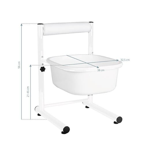 Используется для замачивания ног перед педикюром. Он очень удобен для клиента и мастера педикюра, имеет плавную регулировку высоты чаши. Можно отрегулировать под любую высоту стула. На основании душевого поддона имеется мягкая обивка, куда клиент может опереться ногой.