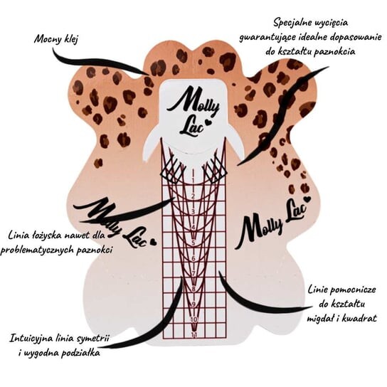 Формы ногтей MollyLac — это сочетание инноваций и функциональности. Благодаря им можно создавать наращивания как салонной формы, так и очень длинные авангардные, например, кинжал. Весы имеют целых 11 длин! Дополнительная перфорация и вырубка позволят вам быстро и легко избавиться от торцевой части шаблона и укоротить его – при необходимости, конечно. Благодаря правильно размещенной вспомогательной сетке вы сможете сделать наращивание быстро, а главное без сложностей.