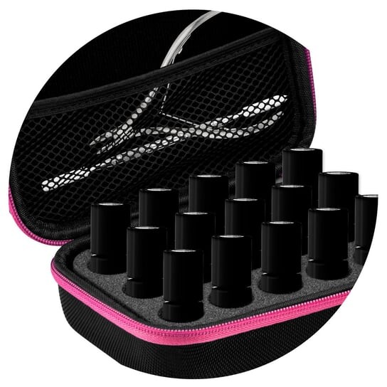 В пенопластовом переплете внутри жесткого футляра можно разместить 15 лаков для ногтей. Кейс изготовлен из жесткого материала, который защищает краски от случайных повреждений. Кейс имеет молнию и ручку для удобной переноски.