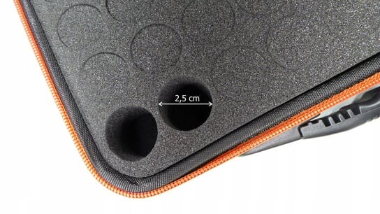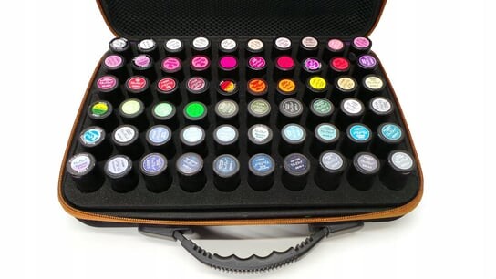 Оснащен съемной губкой, оснащенной 60 круглыми отверстиями диаметром около 2,5 см - Perfect отлично подойдет для хранения гибридных лаков, например марки NeoNail (на фото) или эфирных масел емкостью 5 мл, 10 мл и 15 мл.