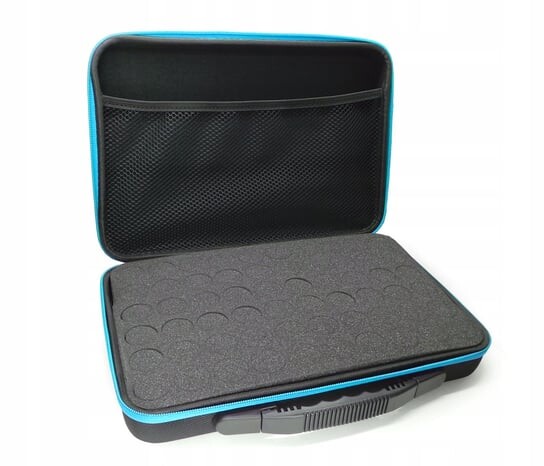 Чемодан, органайзер для для хранения лака для ногтей или эфирных масел.Цвет: Черный с синей молнией.