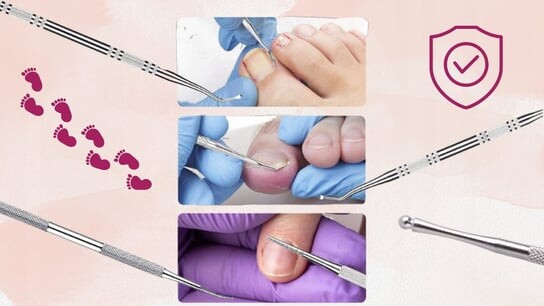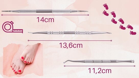 • -3 двусторонних инструмента для безопасной работы с вросшими ногтями.