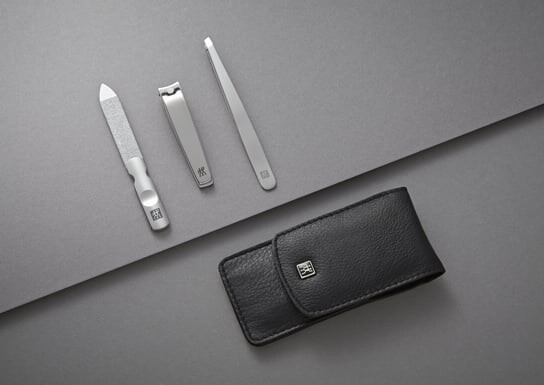 Набор для ухода из трех предметов из линии Classic Inox экономит место, практичен и может использоваться по-разному, как в путешествии, так и при ежедневном уходе дома. Кусачки для ногтей, сапфировая пилка диаметром 90 мм и угловой пинцет надежно хранятся в обтянутом бархатом внутреннем пространстве классического черного футляра из воловьей кожи с застежкой-кнопкой. Все компоненты набора изготовлены из прочной полированной нержавеющей стали и обеспечивают функциональность, долговечность и устойчивость к коррозии благодаря проверенному качеству Zwilling.