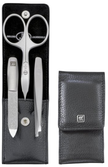 Профессиональный качественный набор для ухода из трех предметов из серии Twinox® занимает мало места, практичен и может использоваться по-разному – как в путешествии, так и для повседневного ухода. Ножницы для ногтей и кутикулы TWIN® S, сапфировая пилочка для ногтей и угловой пинцет надежно хранятся в обтянутом бархатом внутреннем пространстве вневременного запирающегося футляра из черной воловьей кожи. Абсолютно точное производство из нержавеющей, сатинированной нержавеющей стали и идеальная эргономичная форма обеспечивают исключительную долговечность и функциональность в особенно привлекательном дизайне.