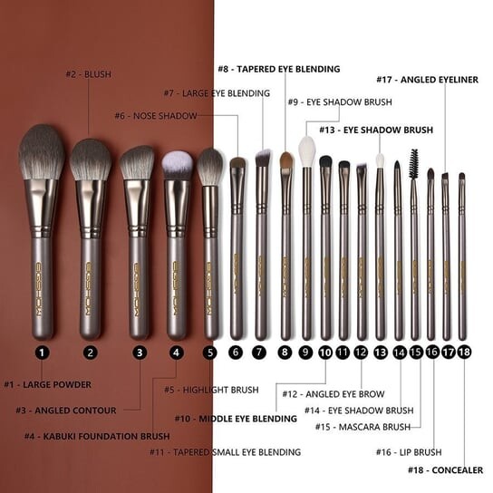 12 — НАКЛОННЫЕ БРОВИ: Эта кисть идеально подходит для нанесения цвета на брови. Жесткие щетинки идеально подходят для нанесения пудры и растушевки карандаша для бровей.