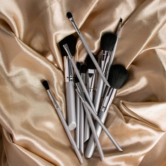 • набор дополнен кистями для макияжа лица: кистью для пудры, кистью для румян, кистью для тонального крема и язычковой кистью для контурирования лица и нанесения консилера