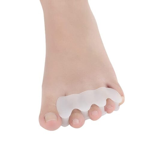 Эластичный, гелевый ортез с 4-мя межпальцевыми корректорами, соединенными гелевой полоской, дополнительно имеет валик в подошвенной части под пальцами ног. Корректоры эффективно разделяют пальцы, корректируя вальгусную деформацию первого пальца стопы, а также предотвращают перекрытие или скручивание пальцев в молоткообразных и когтеобразных пальцах.