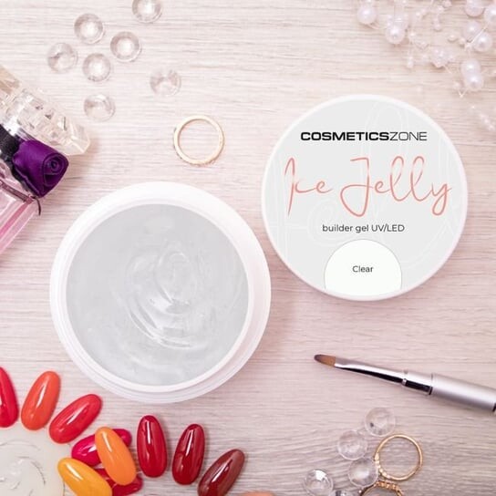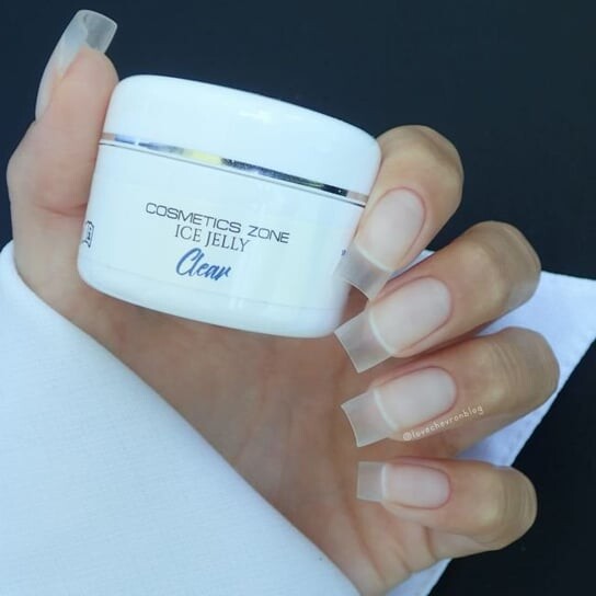 Ice Jelly Clear — прозрачный, густой гель желеобразной консистенции. Характеризуется высокой стабильностью и легкостью нанесения благодаря мягкой и бархатистой консистенции. Он прекрасно сочетается с ногтевой пластиной, создавая твердую и прочную поверхность. Гель обладает деликатными самовыравнивающимися свойствами, идеально подходит для наращивания ногтей по форме или типсам.