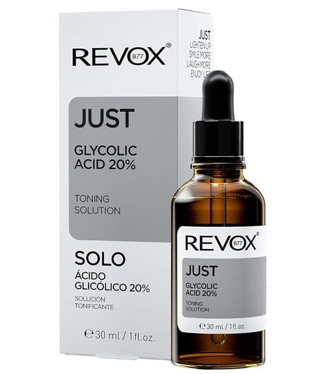 Тонизирующий раствор для лица Revox Just Glycolic Acid 20%, в состав которого входит гликолевая кислота, быстродействующая и быстро усваивающаяся, является отличным отшелушивающим средством для удаления омертвевших клеток кожи. Это также помогает избавиться от черных точек и улучшить расширенные поры, делая кожу гладкой.