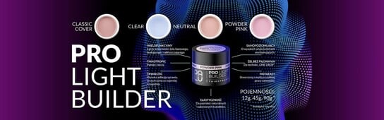 PRO LIGHT Builder GEL — многофункциональный гель, созданный для профессионального использования в салонах. Специальная формула, разработанная на основе опыта стилистов для ускорения и облегчения повседневной работы. Тиксотропность в сочетании с лучшими свойствами самовыравнивания гарантирует идеальную каплю без капель.