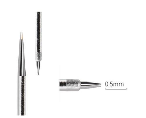 Удобный, многофункциональный и практичный инструмент. Тонкая кисть длиной 9 мм в сочетании со щупом с шариком диаметром 0,5 мм на конце — профессиональный инструмент для укладки ногтей. Сенсационный инструмент для украшения с уникальным внешним видом сочетает в себе два незаменимых инструмента для укладки и украшения ногтей. С одной стороны щуп, с другой тонкая кисть для декорирования. Тонкая кисть из синтетической щетины, аккуратно нарезанной, хорошо подойдет для создания необычных узоров на ногтях. Это также будет полезно при нанесении лака для ногтей вблизи кутикулы. Подходит для рисования традиционными лаками, гелями, гибридными и акриловыми красками. Зонд будет хорошо работать при нанесении различных видов декора, например, страз или камней, а также при рисовании точек.