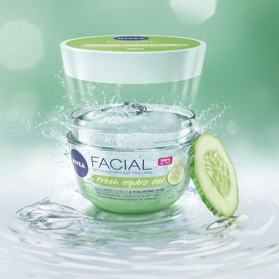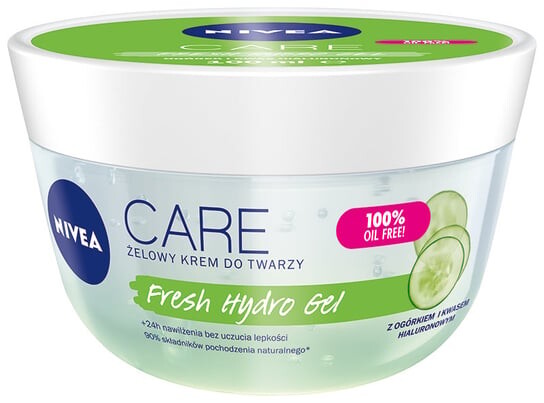 NIVEA® CARE Fresh Hydro Gel обеспечивает увлажнение в течение 24 часов без ощущения липкости. Содержит 90% ингредиентов натурального происхождения* и не содержит масел и этилового спирта. Формула с огурцом и гиалуроновой кислотой не закупоривает поры и придает коже здоровый и свежий вид. Не закупоривает поры. Подходит для всех типов кожи.
