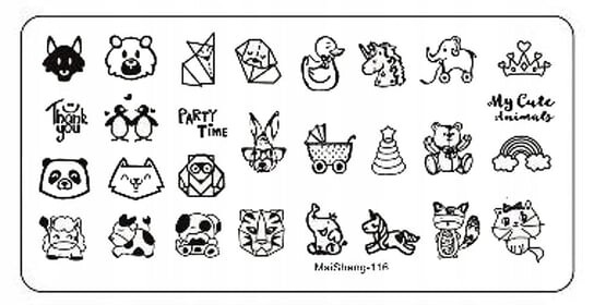 Выкройка: Животные, радуга, единорог, мишка, пингвины, утка, собака, слон. кот, корова, панда - как на картинке.