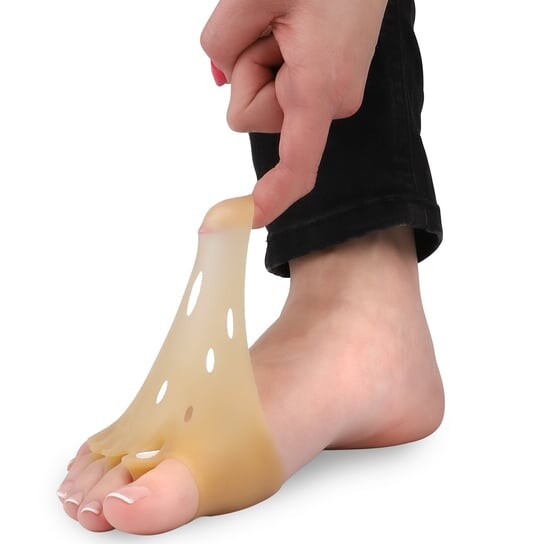 Защита стопы.Разделитель обеспечивает защиту передней части стопы. Он защищает стопу от истирания, а также защищает болезненный сустав. Его можно носить с любой обувью. Мягкий и гибкий силикон легко адаптируется к ноге. Надев туфли, о них можно практически забыть.