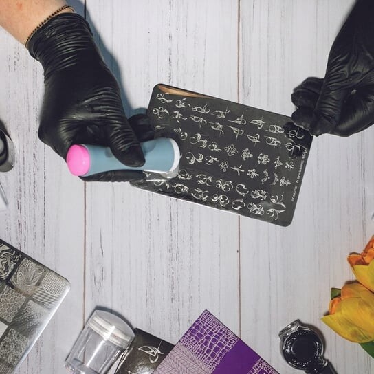 Прозрачный кончик позволяет точно перенести рисунок с пластины прямо на ноготь. Практичный в использовании, легко чистящийся (благодаря съемному силиконовому наконечнику), это идеальный инструмент, незаменимый в лотке каждого мастера маникюра.