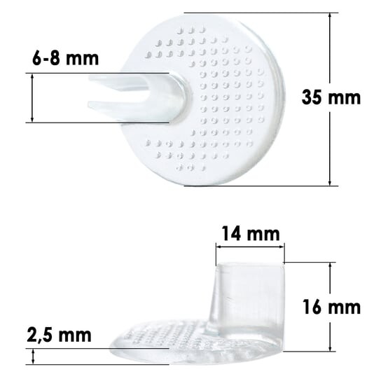 Полувставка с дополнительным чехлом для ремешка между пальцами для шлепанцев. Изготовленные из мягкого и эластичного геля, они предотвращают ссадины в чувствительной области между первым и вторым пальцами ног. Стельки присасываются к обуви.