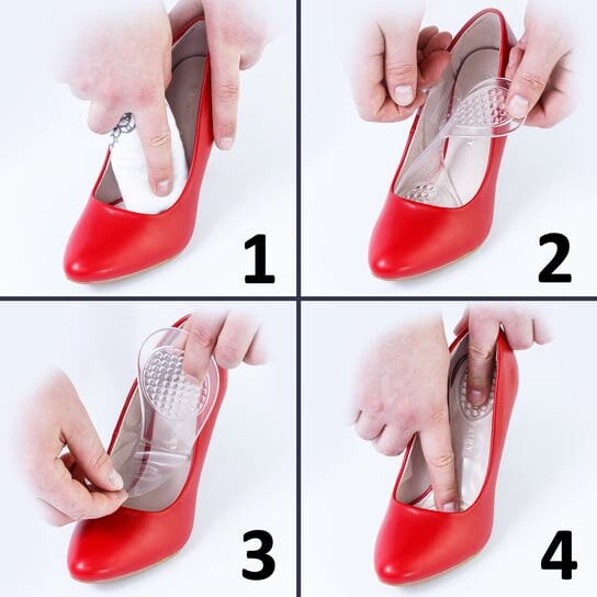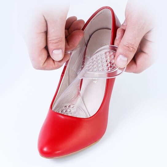 .Гелевые выступы в передней части стельки массируют стопу, одновременно ходьба, тем самым улучшая кровообращение в ногах. В то же время они амортизируют стопу и смягчают последствия ходьбы по твердой поверхности.Мягкий и гибкий силикон прекрасно адаптируется к поверхности обуви.Задняя часть обуви стелька также имеет выступы для массажного геля, которые работают напряжённо. Они снимают боль в пятке, смягчая стопу. Силиконовые вставки для обуви на высоком каблуке.Вставки из мягкого и гибкого силикона отлично подходят для обуви, подвергающейся чрезмерным нагрузкам. есть передняя часть стопы, т. е. туфли на шпильке и другая обувь на высоком каблуке. Ходьба в такой обуви по несколько часов в день зачастую заканчивается жгучей болью в переднем отделе стопы. Это цена, которую мы платим за привлекательный внешний вид.Скажем честно, высокие каблуки возбуждают мужчин. Представленные стельки помогают существенно снизить негативные последствия ходьбы на красивом каблуке.