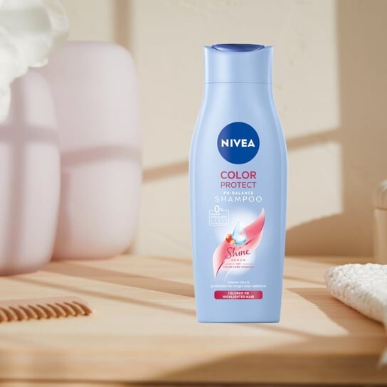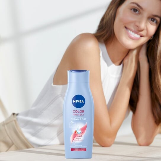 Мягкий ухаживающий шампунь NIVEA Color Protect с комплексом Color Care. Улучшенная формула позволяет шампуню идеально адаптироваться к естественному уровню pH вашей кожи.