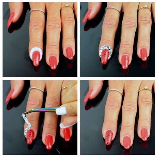 Нанесите Protector Gum на кутикулу вокруг ногтя. Дайте препарату высохнуть — он станет матовым. Сделайте любимое омбре или украшение для ногтей. > Аккуратно удалите защитную резинку пинцетом. Наслаждайтесь идеальной укладкой.