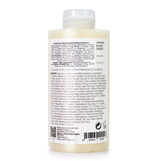 Шампунь для волос Bond Maintenance No.4 от Olaplex – это профессиональный уход за вашими волосами – продукт идеально подходит для парикмахерских и дома. Формула продукта, обогащенная технологией восстановления дисульфидных мостиков, регенерирует и увлажняет волосы, делает их блестящими и легкими в укладке.