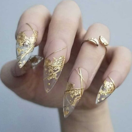 Средство следует наносить кончиком пальца, щупом или кистью, в зависимости от эффект, которого мы хотим достичь. Лучше всего использовать дисперсию гибрида/гель-лака. Однако, если вы поклонник классических лаков для ногтей – подождите, пока лак полностью высохнет, и нанесите хлопья на клей из трансферной фольги. Помните, что независимо от того, какой способ укладки ногтей вы выберете, необходимо покрыть все это верхним слоем для гибридных лаков, например, моллилаком Doctor Top или классическим моллилаком с бриллиантовым топом.