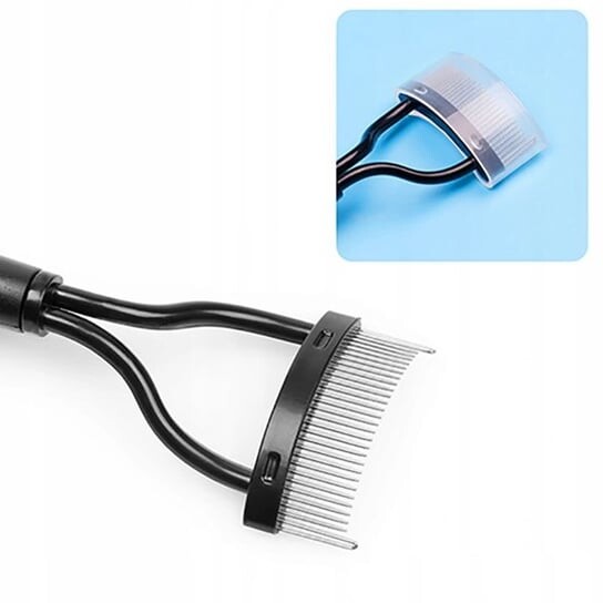 Прибор прекрасно разделяет приклеенные тушью ресницы с металлическими зубцами, расположенными по дуге. Гребень для ресниц изготовлен из качественного пластика и металла, благодаря продуманной конструкции прибор идеально подходит для расчесывания ресниц или бровей.