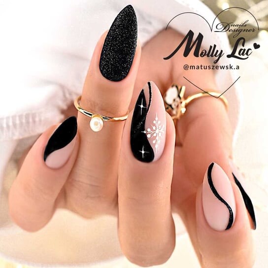 Если вы хотите использовать пыль для украшения украшений - просто нарисуйте рисунок художественным гелем MollyLac и незастывшим посыпьте пыльцой. После затвердевания в лампе вся вещь покажет мастерство украшения блестками.
