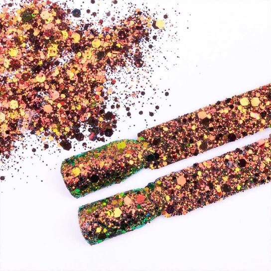Впечатляющий эффект, который заставит вас сиять, как кинозвезда во время гламурного торжества. Это настоящая бомба волшебных, блестящих конфетти для ногтей, сочетающая в себе нежность с «вау-эффектом».