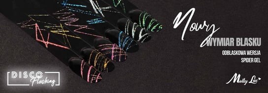 Disco Flashing – создавайте уникальные блестящие образы с новой серией Spider Geli!Идеально прямые линии? Художественный расцвет? С этим уникальным декоративным гелем вы сможете создать даже самую причудливую укладку. Блеск вспышки пробудит в них скрытое сияние и перенесет вас прямиком на танцпол! Почувствуйте ритм диско и придайте своей укладке максимальный блеск!