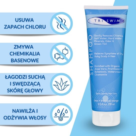 TRISWIM Шампунь, нейтрализующий хлор: его уникальная формула эффективно нейтрализует хлор, бром, морскую соль и химический запах волос с помощью активных ингредиентов, удаляющих загрязнения. Натуральные ингредиенты помогают защитить волосы от сухости, вызванной хлором, бромом, солью и солнечным светом.