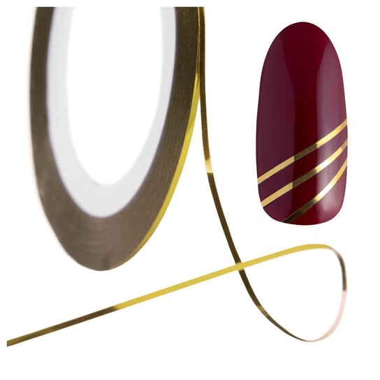 Лента самоклеящаяся, тонкая. Используется для украшения натуральных, акриловых и гелевых ногтей. Его можно наносить на высохший лак в виде декоративных полос, а также использовать как вспомогательное средство для создания точных геометрических украшений.