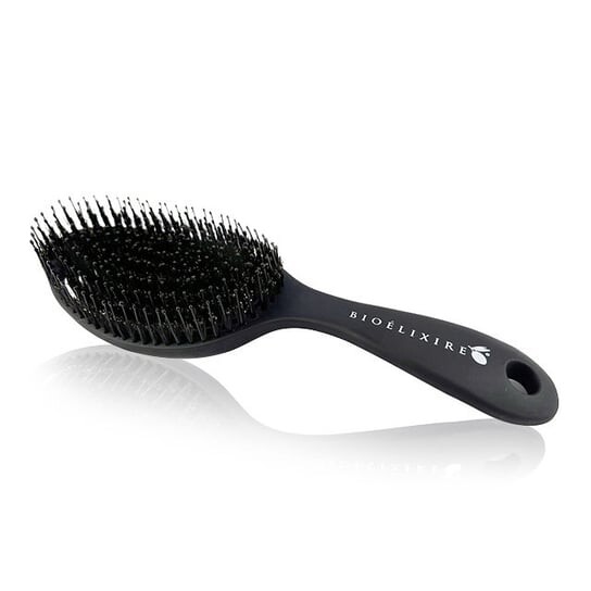 Щётка Bioelixire легко справится даже с очень спутанными волосами. Он оснащен гибкими шипами и натуральной щетиной кабана, которые быстро и безболезненно расчесывают любые встреченные на пути пучки и узлы. На конце каждого шипа имеется шарик, что делает щетку абсолютно безопасной как для волос, так и для чувствительной кожи головы. Щетка имеет гибкую расчесывающую поверхность, которая адаптируется к форме головы.
