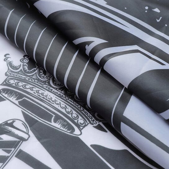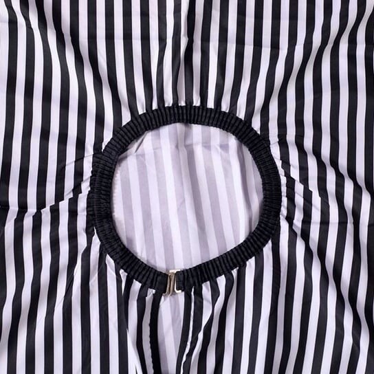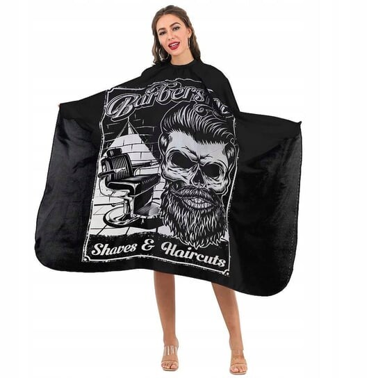 Парикмахерская накидка из нейлона, черного цвета, застегивается на пряжку на шее.