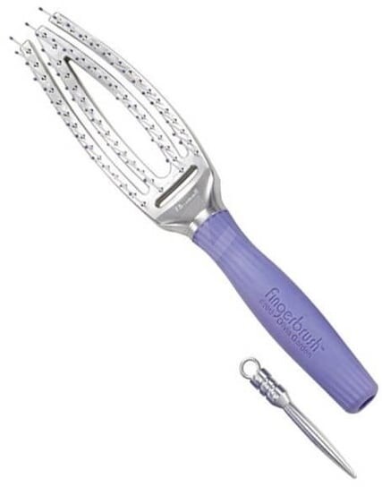 Fingerbrush Combo — щетка для распутывания волос, созданная брендом Olivia Garden. Щетка идеально подходит для ухода за густыми, упрямыми и склонными к спутыванию волосами. Кисть была тщательно изготовлена из материалов высочайшего качества. Fingerbrush Combo состоит из ионизированных шипов с керамическим покрытием. Уникальная структура щетки и большое расстояние между зубьями способствуют эффективному расчесыванию волос. Удобная ручка делает лечение более приятным. Щетка массирует кожу головы, стимулируя кровообращение.