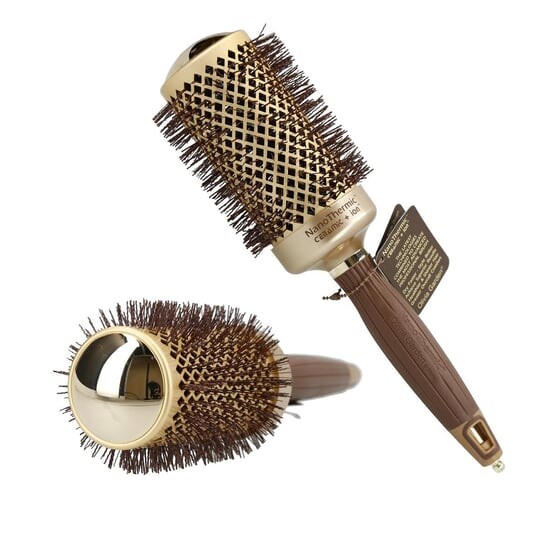 Nano Thermic Ceramic+Ion Round Thermal Hairbrush — кисть для моделирования волос диаметром 54 мм, созданная брендом Olivia Garden. Идеально подходит для ухода за волосами и моделирования. Благодаря специальным отверстиям ускоряется поток воздуха, сокращая время высыхания. Кисть изготовлена с максимальным вниманием к деталям из высококачественных материалов. Его современное керамическое покрытие быстро нагревается и долго сохраняет тепло. Щетина щетки обладает антистатическими свойствами, благодаря чему Nano Thermic Ceramic+Ion Round Thermal Hairbrush не электризует волосы. Он чрезвычайно бережен к волосам и коже головы. Благодаря использованию турмалиновой технологии и ионизации волосы после использования щетки становятся исключительно блестящими и гладкими. Кисть обладает антибактериальными свойствами. Он придает волосам здоровый вид и делает их красивыми.